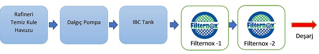 Gerçekleştirilen filtrasyon testlerinde Filternox® NTU Terminator filtrelerin filtrasyonunda; Rafineri Temiz Kule Noktasında;